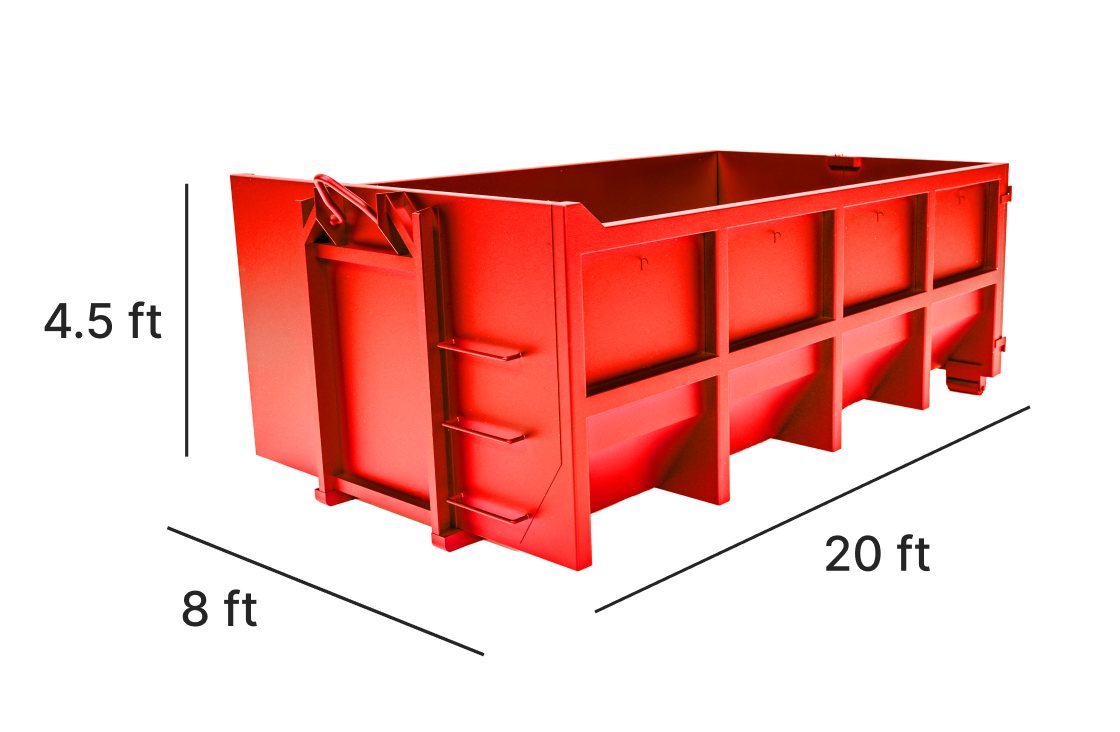 Holds about 8 pickup loads. Large residential-friendly capacity for big remodels, storm debris, ongoing jobs.
